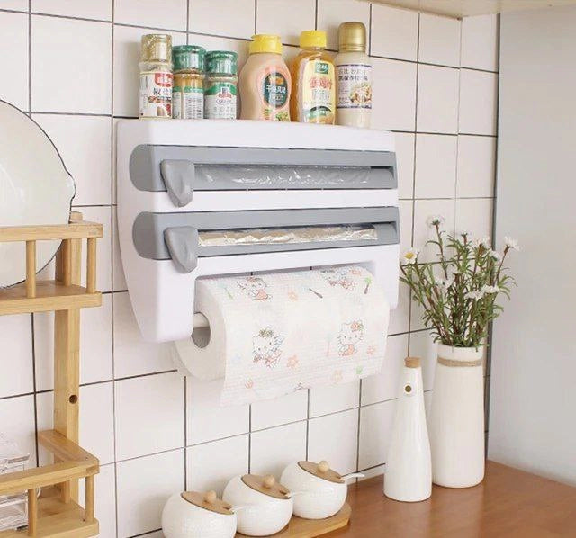 حامل بكر فويل + حامل بكر استرتش + حامل بكر مناديل مطبخ. + رف علوى