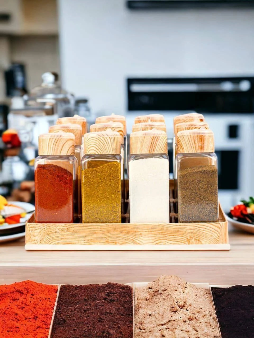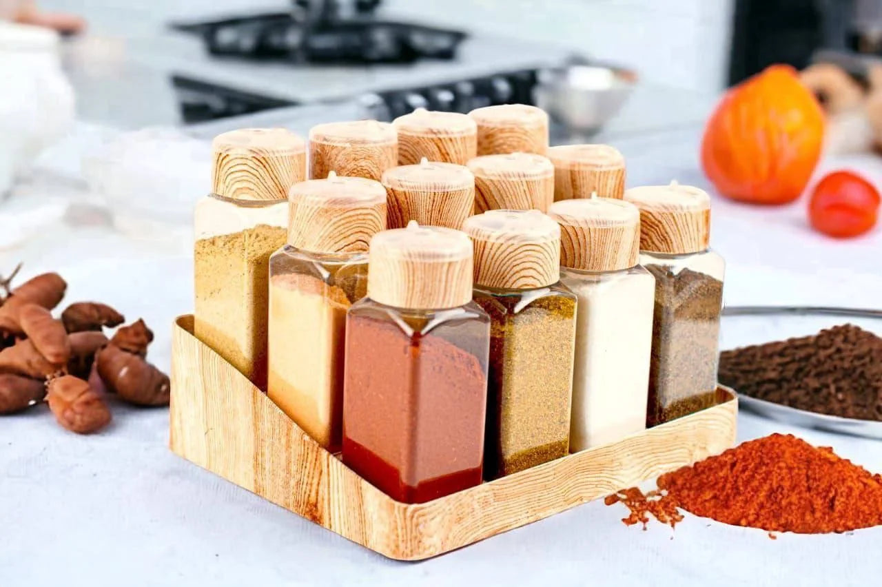 طقم مكون من أوعية يستخدم لحفظ وتنظيم انواع البهارات