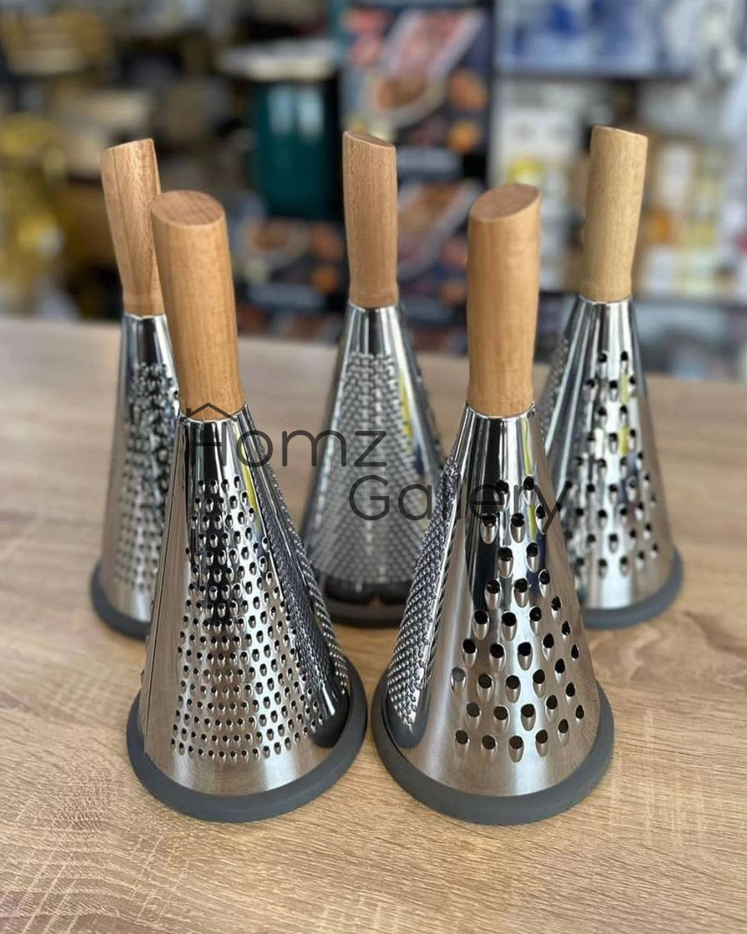 مبشرة استانلس مزوده بيد مصنوعة من الخشب الزان و بها قاعدة سيليكون لتثبيتها اثناء الاستخدام